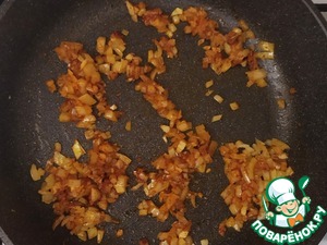 В той же сковороде обжарить лук и чеснок.