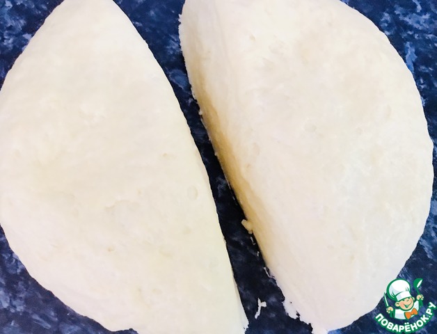 Тесто из холодильника разделить на две части. Подпылять мукой не нужно.