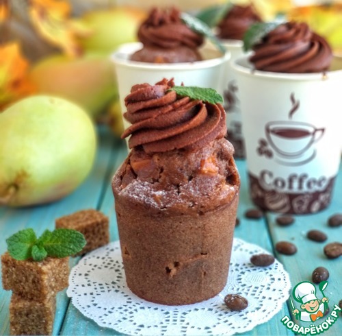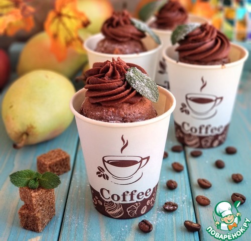Рецепт «Шоколадно-кофейные кексы с грушей в стаканчиках»:
