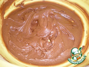 Готовим массу для узора: масло растираем с сахаром, добавляем белок, муку, какао. Всё перемешиваем.