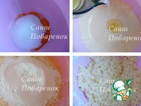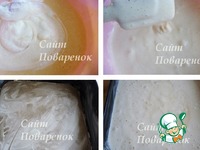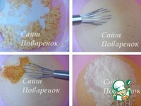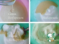 Желтки взбить миксером с сахаром, влить растительное масло, взбить. Просеять в массу крахмал, взбить. Масса становится слегка желированной. |