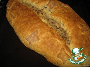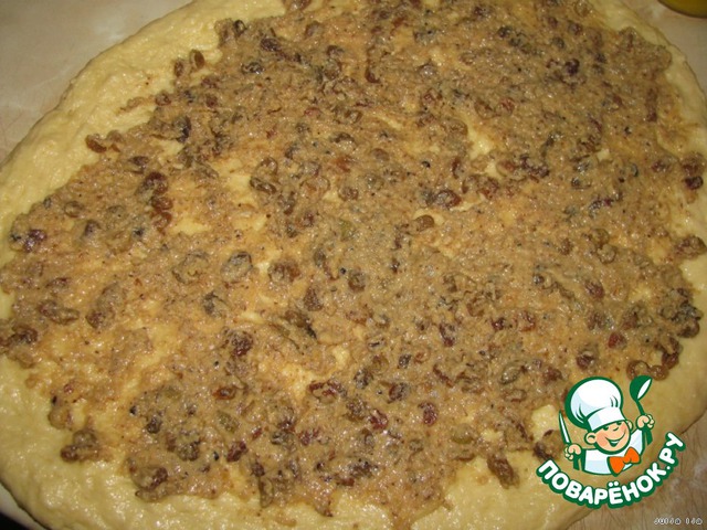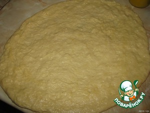 Потом придаём ему форму овального пласта. Теперь отступление... Практика показала, что придавать тесту форму, а также совершать с ним дальнейшие манипуляции лучше сразу на смазанном противне. Перекладывать потом трудно, тесто очень нежное.
