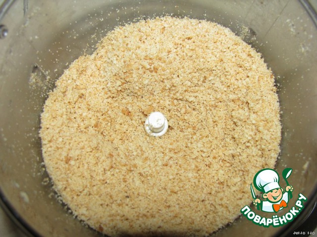 Измельчаем сухари, а лучше печенье типа "Юбилейного" в блендере.