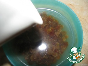 Изюм нужно промыть и залить кипятком, чтобы постоял минут 30.