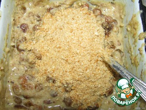 В массу, которая уже остыла и загустела, добавляем сухари и изюм.