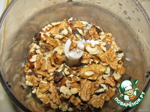 За время, пока тесто подходит, приготовим начинку. Измельчим грецкие орехи в блендере.