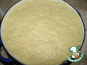 Всё смешать. Я смешивала миксером, с насадкой для теста, на самой маленькой скорости.