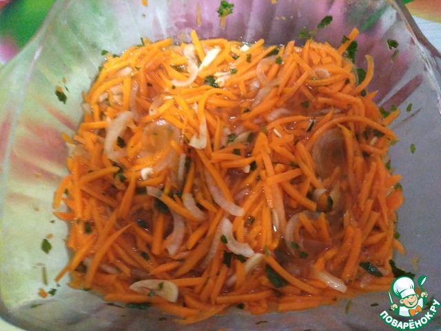 В банку выложить овощи, рубленую петрушку, залить маринадом, полностью остудить. Убрать в холодильник на 3-6 часов.