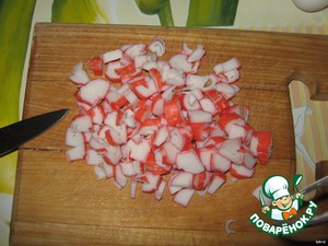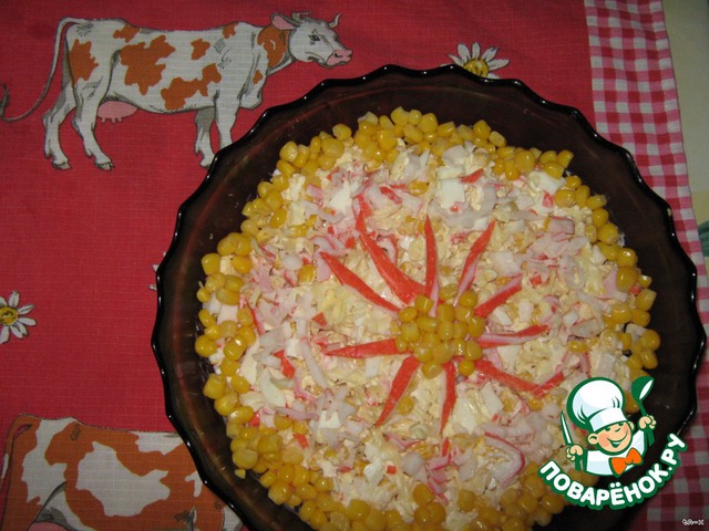 Предлагаю салат с крабовыми палочками, который давно делаю, может кто уже знает его(извините) Салатик нежный на вкус, готовится быстро и легко)))