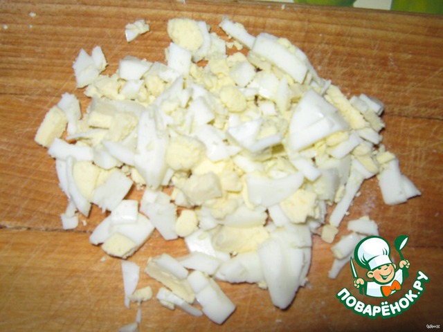 Все ингредиенты режем кубиками, сыр и чеснок трем.Для тех,кто хочет салат без остринки,чеснок можно не добавлять)))Салат заправляем майонезом.