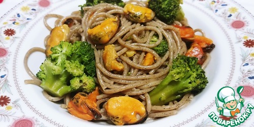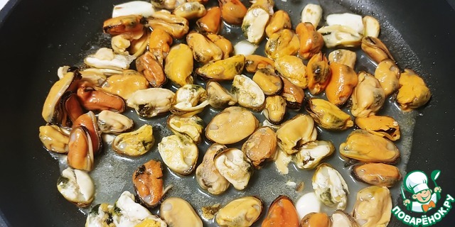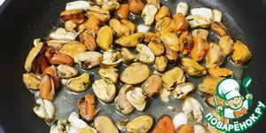 В рецепте предлагали потушить минут 10 брокколи на сковороде и затем добавить моллюски.