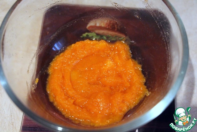 Выложить в него пюре тыквы и блендером пробить до гладкости.