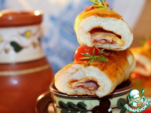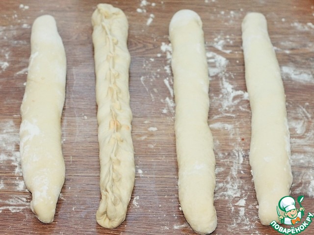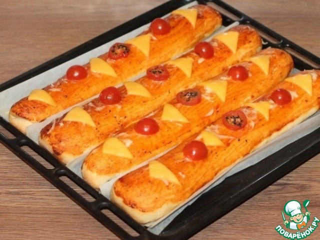 18. Ставим противень с багетами в разогретую до t 220-230 С духовку, минут на 20-25 или до румяной корочки. Мягкие, пряные, и очень вкусные багеты с начинкой готовы!