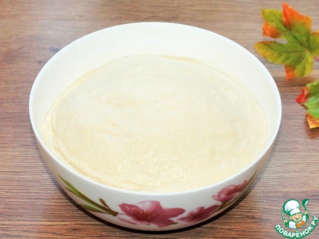 7. Смазываем тесто и миску растительным маслом (0,5 ст. л.) и накрываем плотно крышкой или пленкой. Ставим миску в теплое место для подъема теста в 2,5 раза, минут на 60.