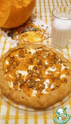 Раскатать тесто в круглый пласт толщиной 3-4мм. Выложить тыкву, сыр, оставляя по краям полоску теста. Посыпать сверху орехами и тыквенными семечками. Подвернуть края теста на начинку. Выпекать в разогретой до 180 градусов духовке 40 минут. Подавать как горячим, так и холодным.