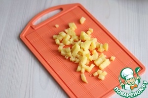 Картофель (1 шт.) отварить до готовности, нарезать мелкими кубиками.