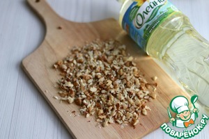 • Грецкие орехи (3 горст.) хорошо промыть. Нарезать не крупными кусочками или пробить слегка блендером в не крупную крошку.