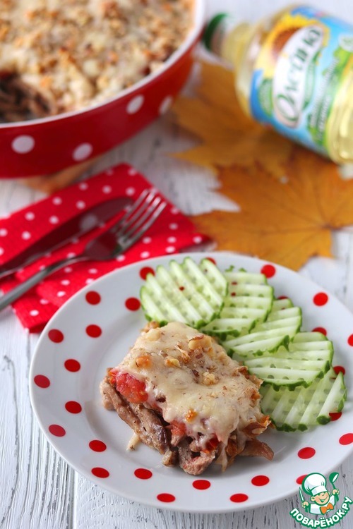 - Масло растительное (Масло растительное ТМ "Олейна" классическая. 1-ст. ложка для добавления в форму для запекания, 5 ст. ложек для обжаривания мяса.) — 6 ст. л.