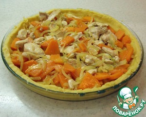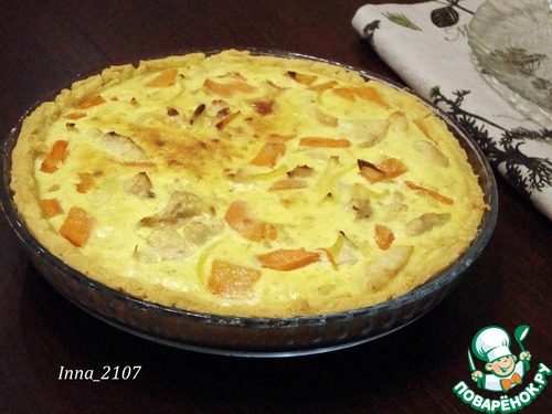 Предлагаю испечь сытный и вкусный киш с тыквой и куриной грудкой. Он подойдет как на сытный завтрак, так и на ужин. Вкусен в горячем и холодном виде. По желанию можно курицу заменить на индейку.