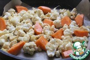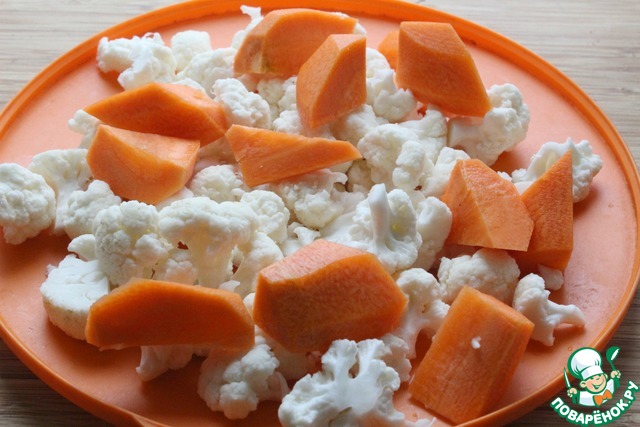 Морковь очистить и порезать на кусочки чуть больше среднего. -
