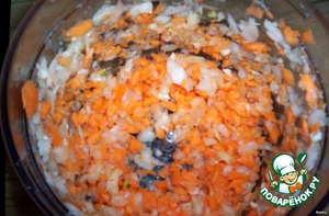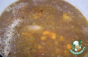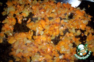 - измельчить лук и морковь, поджарить на подсолнечном масле, добавить в бульон, варить 5 минут