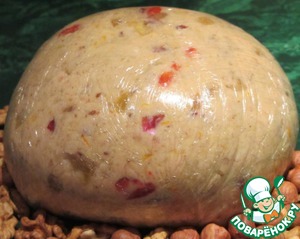 • Размягченное сливочное масло взбить с сахаром примерно (1-2 мин.), затем добавить творог, ванилин, ром и перемешать на средних оборотах. Далее добавить просеянную муку, разрыхлитель, молотые и рубленные орехи, цедру апельсина и специи, все хорошенько перемешать. Изюм (сухофрукты, цукаты) тщательно промыть и залить кипятком на 10 мин., слить воду, обсушить полотенцем (сухофрукты нарезать соломкой), обсыпать мукой, перемешать и добавить в тесто (тесто вымешиваю руками).