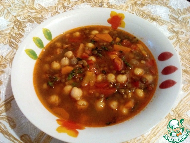 Суп без мяса, но очень сытный, благодаря бобовым. Восточные специи делают суп ярким, пряным, богатым на вкус.