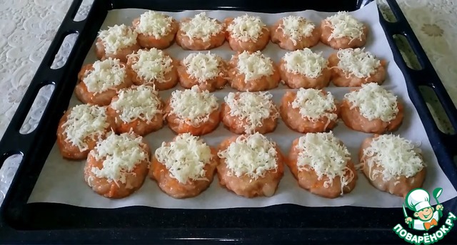 4. Далее с помощью ложки формируем круглые котлетки и кладем на застеленный пергаментом противень.