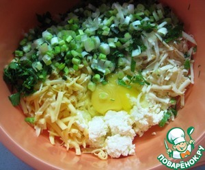 Добавить яйцо и мелко нарезанную зелень петрушки и укропа, зеленый лук.