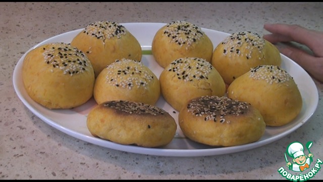 Тыква - очень хорошо ведет себя в выпечке. Булочки, хлеб, пироги с добавлением тыквы в тесто получаются очень мягкими, нежными и вкусными. Те, кто тыкву не любят, с удовольствием едят такую выпечку. А тыква, как мы знаем, сохраняет свои полезные свойства и после термообработки. Эти булочки можно как запекать в духовке, так и жарить на сковороде.