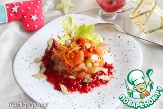 • Выложить салат в порционные тарелки и украсить петрушкой. К салату отлично подойдут хрустящие хлебцы, но и сам по себе он действительно хорош. Приятного аппетита!