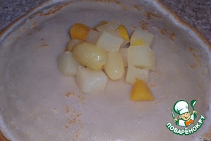готовые блинчики выкладываем на блюдо и смазываем сливочным маслом или сливками,фаршируем фруктами с сворачиваем,полить сливками и посыпать какао.