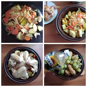 - Масло подсолнечное (с добавлением оливкового ТМ Олейна, 2 ст л обжарить овощи и курицу, 1 ст л полить виноград перед запеканием) — 3 ст. л.