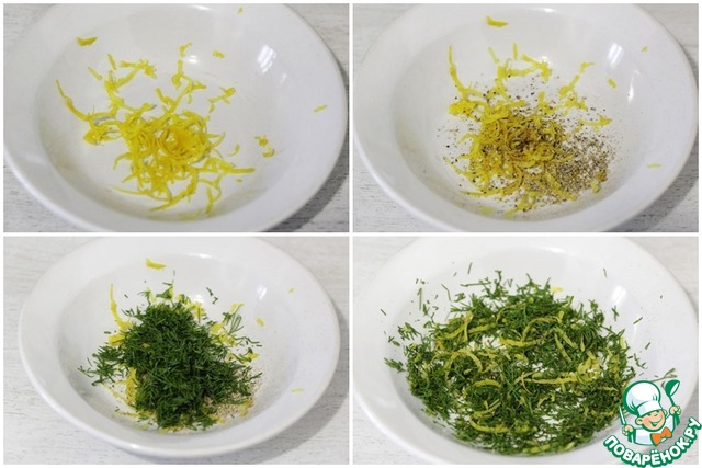 Приготовить ароматную посыпку для картофеля, смешав мелко натертую цедру, соль, черный молотый перец и мелко нарезанный укроп.