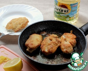 Обжарить куриные грудки по 3-4 минуты с каждой стороны и обжаренные грудки выложить на тарелку.