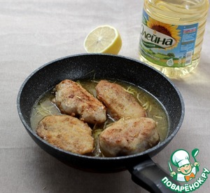 В сковород, у где жарились грудки, влить полстакана куриного бульона, лимонный сок и всыпать цедру, выложить оставшееся сливочное масло, все довести до кипения и уменьшив огонь, проварить пару минут. Затем выложить в соус куриные грудки, протомить 3-4 минуты, чтобы они пропитались лимонно-масляным соусом.