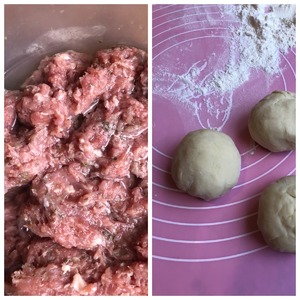 Такое вот эластичное, не липнущее к рукам тесто. Накроем его полотенцем и займёмся фаршем. Мясо прокрутить в мясорубке вместе с луком и чесноком. Добавить все специи и соль. Тщательно вымесить фарш.