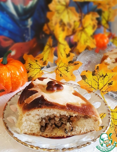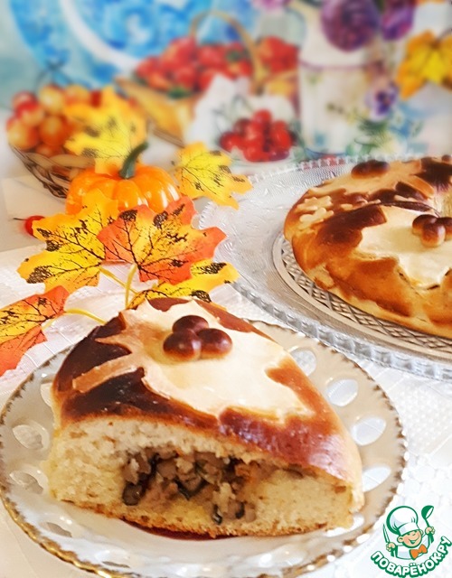 Предлагаю приготовить пирог с начинкой в форме калача. Начинка может быть любая, у меня мясо с грибами. А украшения в осеннем стиле на пироге будут смотреться очень эффектно.