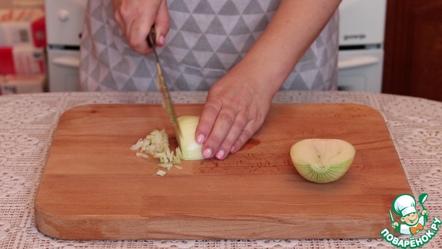 Печень промыть. Отправить в блендер вместе с 1 луковицей и довести до однородного состояния.