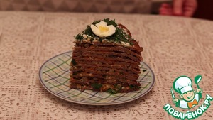 Красивая, сытная и вкусная закуска, которая украсит праздничный стол. Обычно для приготовления я использую куриную печень. Блинчики получаются более нежные. Говяжью печень так же можно использовать. Только для этого ее необходимо предварительно вымочить в молоке.