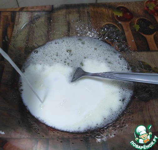 Добавить тёплое молоко и подсолнечное масло, перемешать.