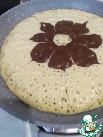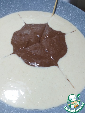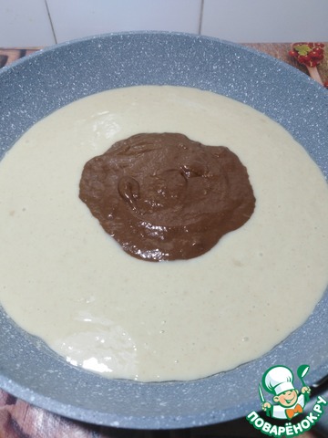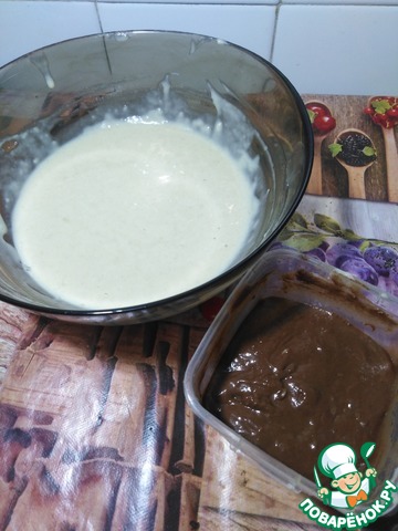 В небольшую мисочку отложить 4 ст. л белого теста и добавить какао, перемешать.
