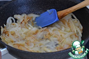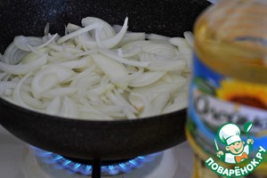 Репчатый лук нарезать перьями, приправить сахаром и обжарить в 50 мл подсолнечного масла (масло ТМ Олейна классическая) на активном огне, постоянно помешивая.