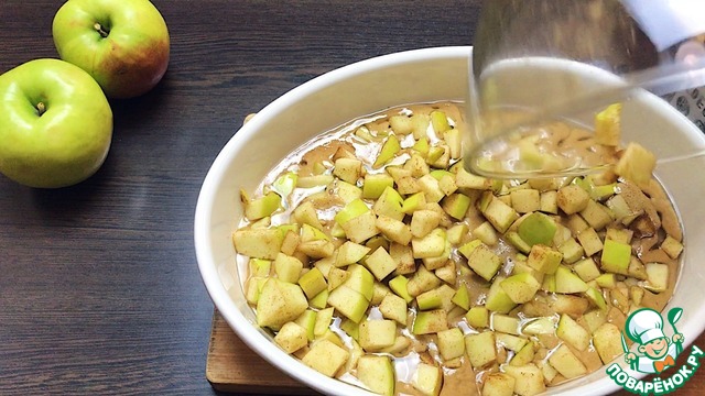 Пока форма разогревается в небольшой миске смешать нарезанные кубиком яблоки, корицу и имбирь
