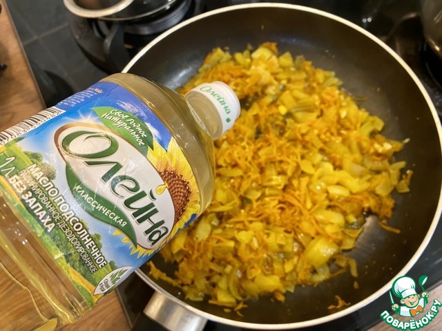 • Добавить 4 ст. л. подсолнечного рафинированного масла (ТМ Олейна классическая), перемешать.
