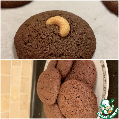Рукой можно слегка выровнять поверхность печенья, чтобы оно получилось более плоским. Сверху можно украсить орешками, шоколадом, можно пропустить этот момент. Выпекаем в духовке разогретой до 180° 8-10минут.