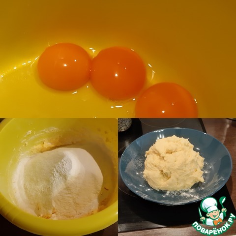 Просеиваем муку с разрыхлителем, перемешиваем.