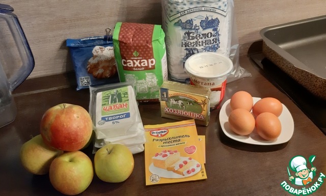Ингредиенты для «Творожно-яблочный пирог»: