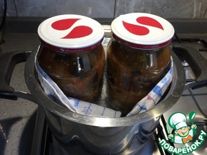 • Раскладываем полученную закуску по стерилизованным баночкам. Накрываем крышками и оставляем на 10 минут.
