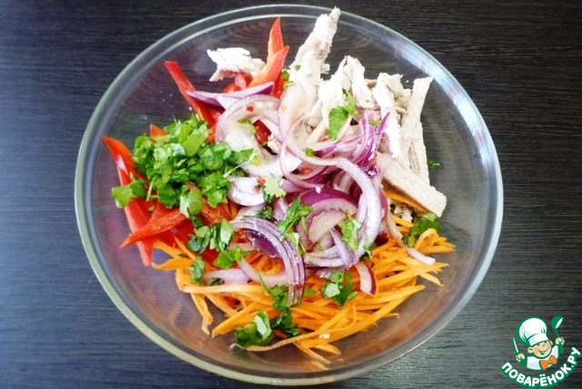 Сделал часть салата с корейской морковкой - неплохо, только надо ее меньше класть